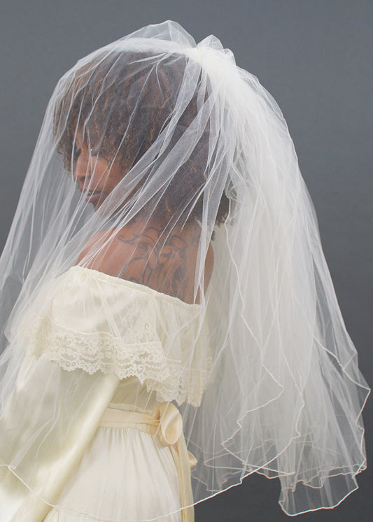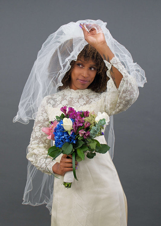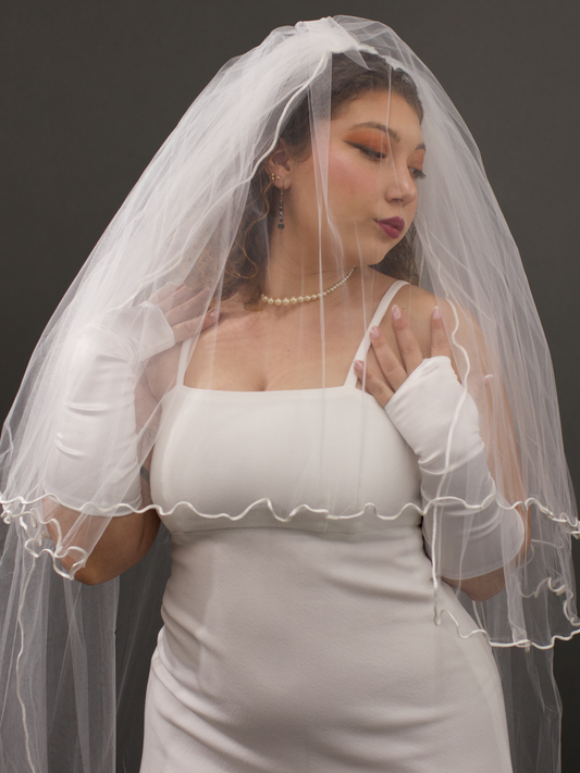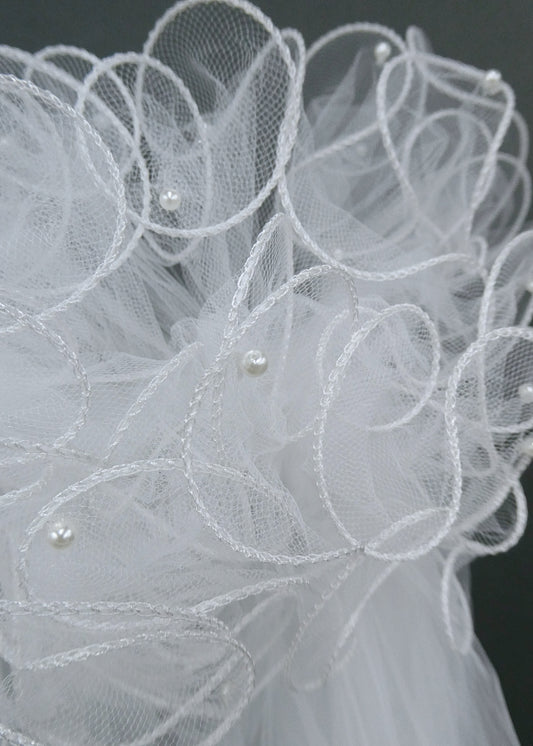 Scarlett Ivory Bat Wing Swirl Hem Veil
