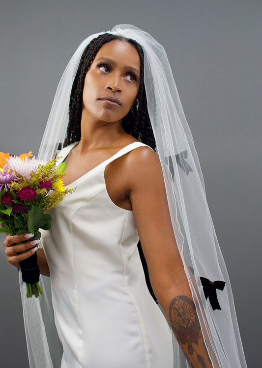 Velvet Mini Bow Ivory Cathedral Length Veil
